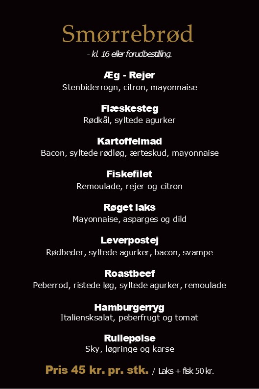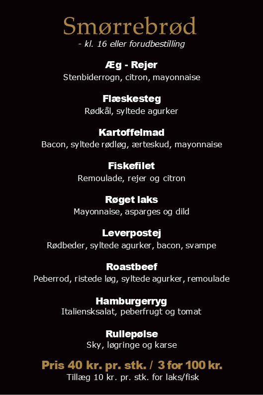 + ekstra smørrebrød pr. stk. 35 kr.